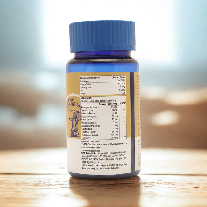 Ashwagandha, Shatavari, Gokshura, Kaunch Beej, Brihati, and Makardhwaj form a powerful blend supporting vitality, endurance, and overall well-being.